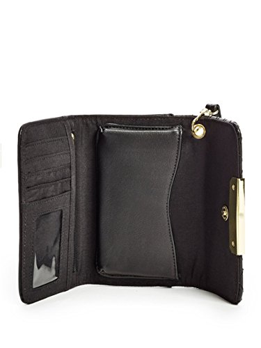 Feature : gbyguess_women s_handbags_wallets_wristlets women / handbags wallets wristlets gby guess ns black / removable strap drop 25 faux leather flap logo / plaque gold tone hardware interior features / smartphone pocket card slots zipper id window