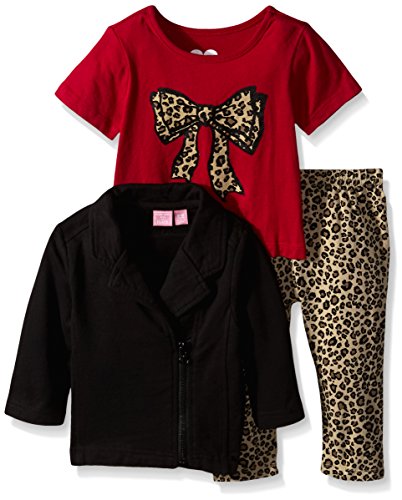 -. Binding : Apparel -. Brand : The Children's Place -. Department : baby-girls -. Feature : Short sleeve shirt made of 100 percent cotton jersey with ribbed trim / Full-length pants made of 95 percent cotton and 5 percent spandex jersey / Full-zip jacket / Pullover t-shirt with leopard bow at front / Pull-on pants with elasticized waist -. Label : The Children's Place Children's Apparel -. Manufacturer : The Children's Place Children's Apparel -. Model : 2048109 -. PackageQuantity : 1 -. ProductGroup : Apparel -. ProductTypeName : SHIRT -. Publisher : The Children's Place Children's Apparel -. Studio : The Children's Place Children's Apparel -. Title : The Children's Place Baby-Girls Moto Jacket Set