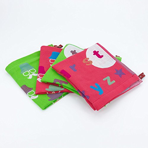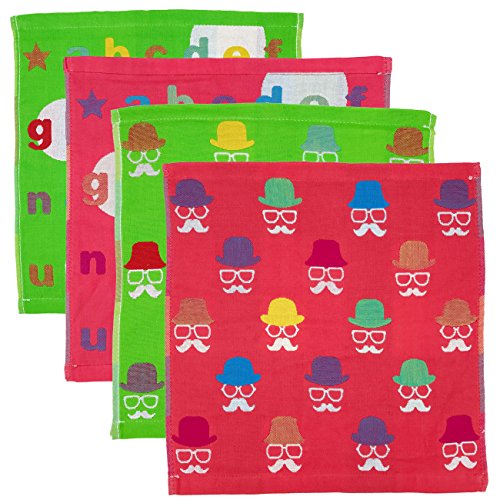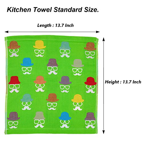 Household 4 Pack 100% Cotton Cute Pattern Kitchen Dish Wash Towel Set E