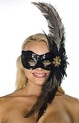 -. Binding : Apparel -. Brand : Popcandy Handhelds Props -. ClothingSize : Onesize -. Color : OneColor -. Department : womens -. EAN : 6014273542949 -. Feature : For Costumes, Halloween and Anything FUN! / RMA# is required for ALL returns. Please contact us for an RMA#. / All returns are subject to a 15% restocking fee. -. ProductGroup : Apparel -. ProductTypeName : ACCESSORY -. Size : One Size -. Title : Popcandy Beautiful Black Feather Venetian Mask with Sequins and Jewel Masquerade