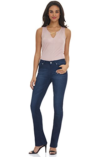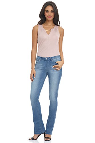 *New* Rekucci Bootcut 5-Pocket jeans in our most luxurious super soft denim. It feels like a legging but looks like a true pair of jeans, you won't believe you can be this comfortable and stylish! The ease and comfort of our famous pull-on fit with a fake waist snap and 5-pocket styling for that authentic denim look. The bootcut leg is a timeless, classic shape that slims the silhouette and lengthens the leg. Our range of washes and classic styling means you can wear these anywhere: weekend casual, workwear chic, even yoga. Refined and chic details, such as tonal stitching with back pocket design, rivets, faux front snap and back logo tab bring elevated, runway ready style to your closet.Feature