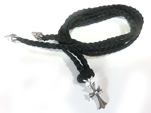 -. Title : クロムハーツ同等 シルバー925 バレルボロチップ付三つ編み革紐 約50cm