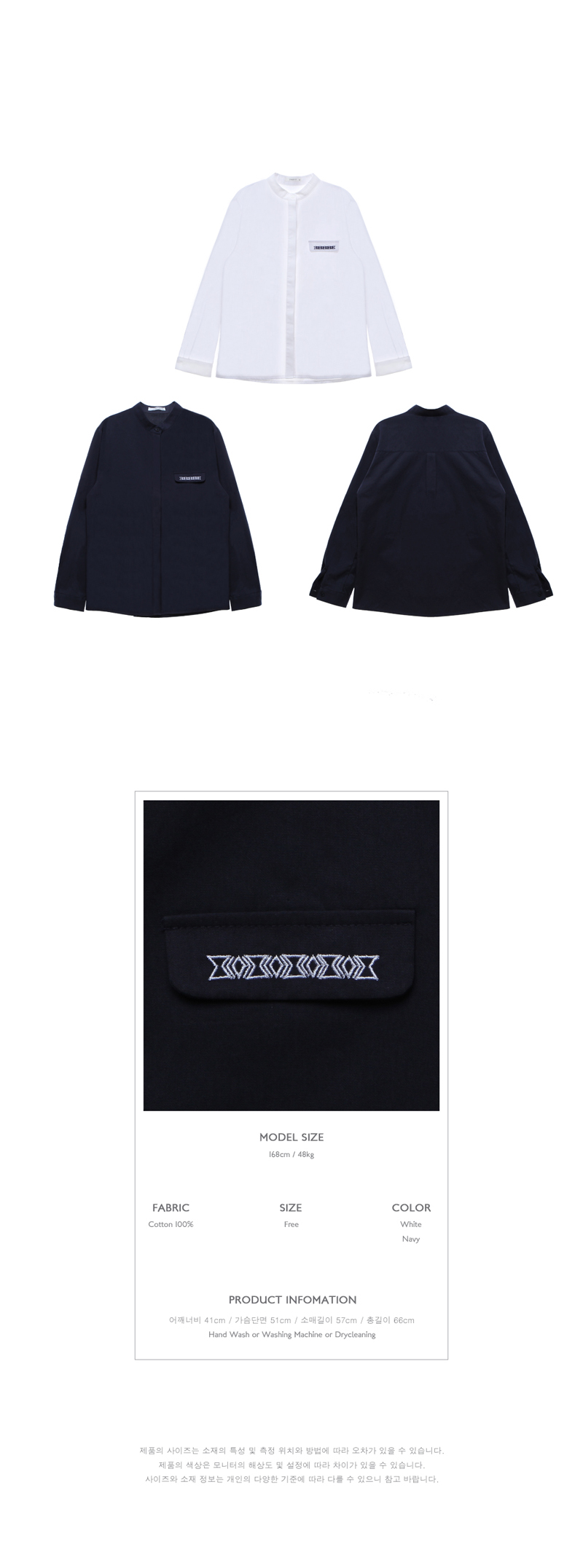 앞판의 페이크 포켓 위에 자수를 쳐서 에스닉하면서도 캐주얼한 느낌을 주었습니다.