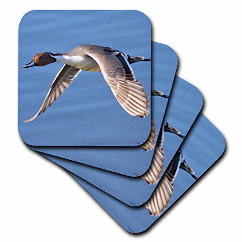 3dRose cst_45717_3 Male Northern Pintail Duck in Flight. Bolsa Chica Wetlands, California Ceramic Tile Coasters, (Set of 4)