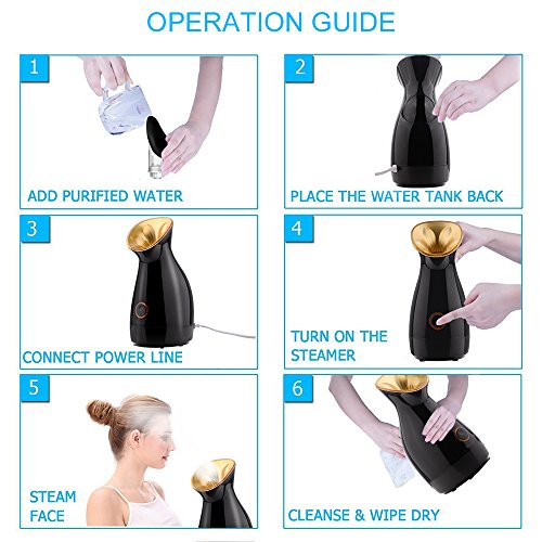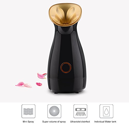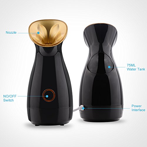 - DEEP CLEAN TO YOUR SKIN --- This steamer machine for facial treatment opens and unclogs the pores, removes dirt, oil and makeup. Besides, it cleans your follicles and detoxifies your skin. It kills the skin bateria and melts away dead skin cells, giving a deep clean to your clean.