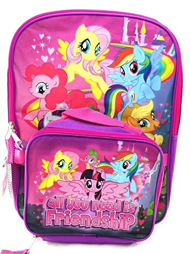-. Brand : Licensed -. Color : PINK -. Department : girls -. EAN : 0642141121055 -. Feature : Officially Licensed / Adjustable padded shoulder straps / one side meshed pocket / Lunch Bag Size: 9.5 in(W) X 7.5in(H) X 3.5 in(D) / Measures around : 16"H x 10"W x 5"D -. Model : my little pony -. PackageQuantity : 1 -. ProductGroup : Apparel -. ProductTypeName : LUGGAGE -. Size : Small -. Title : My Little Pony 16" Backpack with Detachable Insulated Lunch Bag Set -. UPC : 642141121055