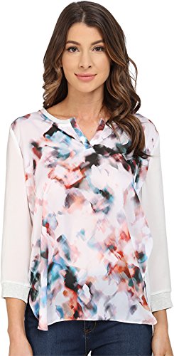 Rounded neckline with notched collar. Three-quarter length sleeves. Ribbed knit trim adorns cuffs and collar. Rounded dropped hemline with vented sides. 100% polyester. Machine wash warm, tumble dry low. Imported.
