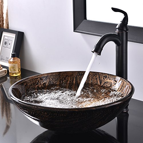 Artistic Tempered Glass Above Counter Round Lavatory Bathroom Vessel Sink, Vessel Sinks For Bathroom