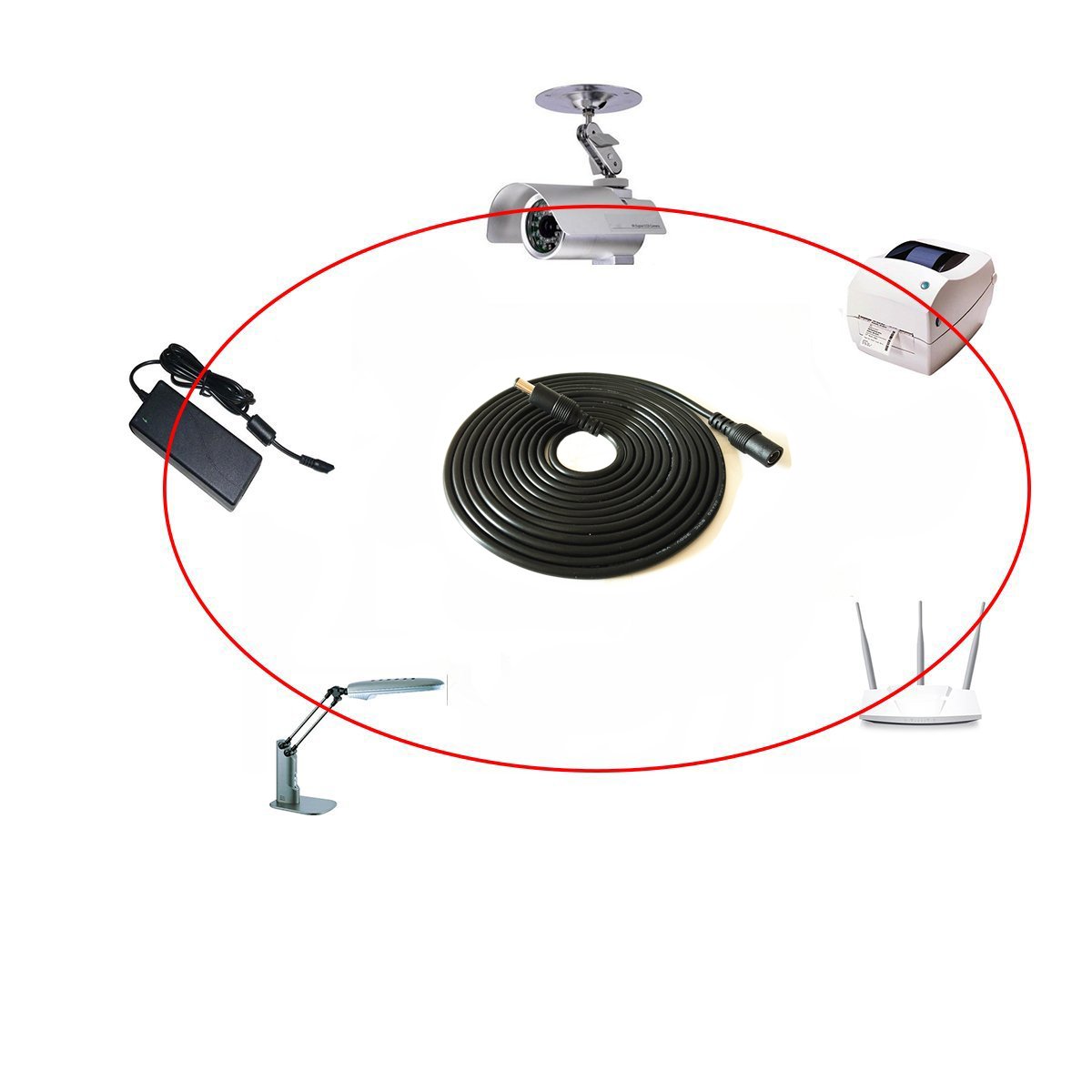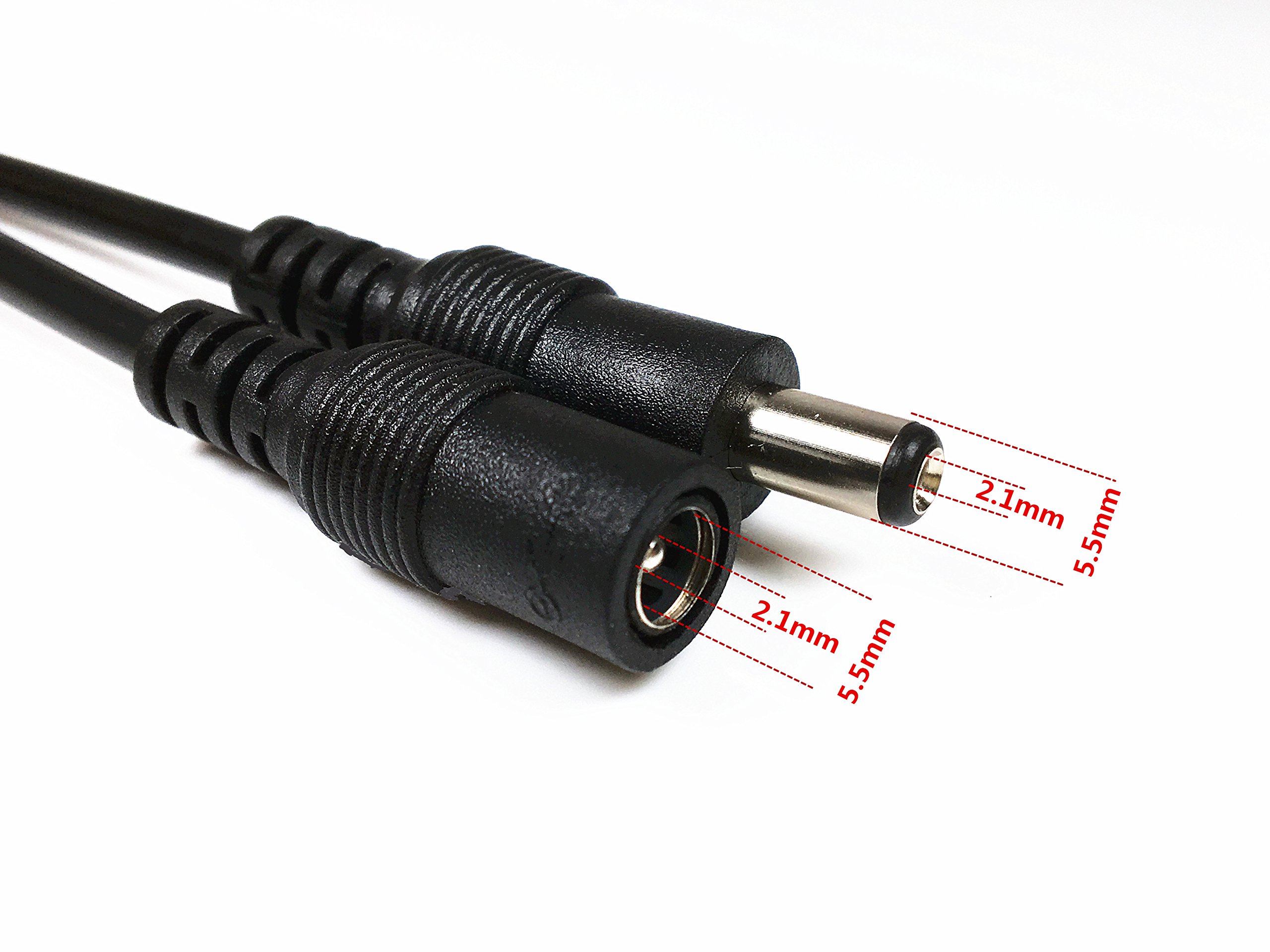 2.1 mm × 5.5 mm DC plug extension cable can not reach the 2.1 mm x 5.5 mm plug at the place where CCTV camera, printer, LED lamp, sign, sensor, DC input is necessary, wall outlet available.