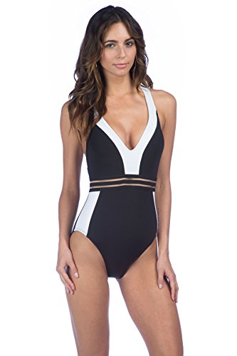 Studio : Kenneth Cole New York Women's Swimwear Publisher : Kenneth Cole New York Women's Swimwear Binding : Apparel Product Description Stompin in my stilettos solid color blocked plunge neckline t back one piece mio swimsuit with illusion stripe elastic waistband traje de band 0