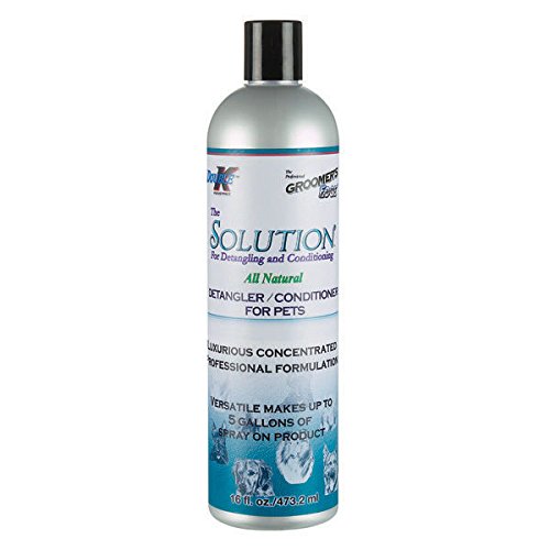 Studio : UnBranded Publisher : UnBranded Binding : Misc. Product Description The Solution Dog Cat Conditioner The Solution Detangler/Conditioner is a gentle, all natural pet conditioner formula with no harsh chemicals. This versatile conditioner is effective on a wide range of coat types, and is ideal for regular use. The Solution features an emollient and humectant rich formula contains no harsh chemicals.Use diluted as a conditioning sprayApply directly to coats to detangle tough mats.Great for use with show dogsDilutes 32:1 Groomer's Edge The Solution Conditioner is safe for puppies and kittens over six weeks old. Available Sizes: 16 oz. and 1 gallon Directions For Use:Severely Matted Hair or Fur: Apply concentrated product directly onto severely matted hair or fur and massage in using fingers to separate the mat. Leave in one to two minutes and gently brush or comb out. Rinse well.Lightly or Moderately Matted Hair or Fur: Dilute product with as little as four parts and up to 32 parts water and pour on or spray animal (as consistency warrants). Gently comb or brush out and rinse well. May be used as a leave-in conditioning spray at dilutions of 28 to 1 and higher. Warning: Do not use this product in a manner inconsistent with its labeling. Keep out of reach of children. For external use only. Clean/sterilize dilutant containers to prevent contamination.