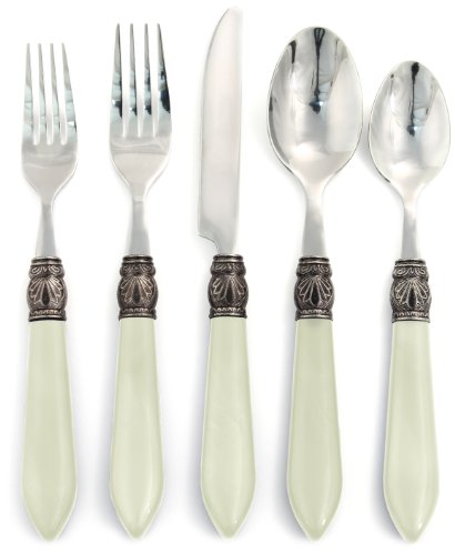 Studio : Hampton Forge Publisher : Hampton Forge Binding : Kitchen Product Description Chunky and inviting, Argent Sophia Off White flatware from Hampton Forge has a pleasant retro look that makes a great choice for daily dining and casual celebrations. Crafted from durable plastic and 18/0 stainless steel, the pattern features comfortable handles. With 20-piece in all, this Sophia Green set includes: 4 Dinner Forks, 4 Salad Forks, 4 Dinner Knives, 4 Dinner Spoons, and 4 Teaspoons. For convenient cleanup all-pieces are dishwasher safe for use with non lemon or acidic detergent. 0