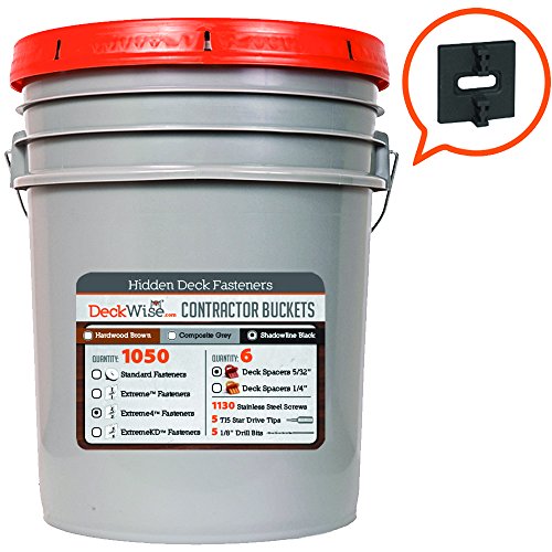 DeckWise Ipe Clip - Extreme 4 Fastener System - 5/32" Spacing - BLACK CLIPS - 1050 pc Contractor Bucket for 600 Sq. Ft. of Decking - (Includes 8 x 2" Stainless Steel Screws)