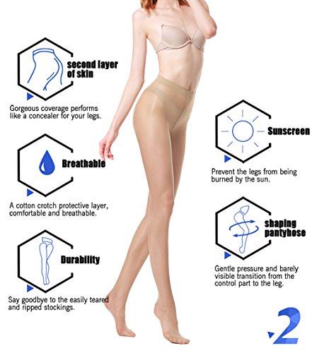 -. Feature : Stockings in high elastic material, no sausage case feeling, no itchy feeling of discomfort / T crotch design to prevent exposure, cotton crotch protective layer, comfortable and breathable, the protection of women's health / Semi opaque top and durable material, control top, cotton gusset, suitable for all seasons / Full length silk stockings, from feet to waist, soft, stretchy, durable tights / Dressing semi sheer tights coupled with your favorite skirts or shorts, these are a perfect fit