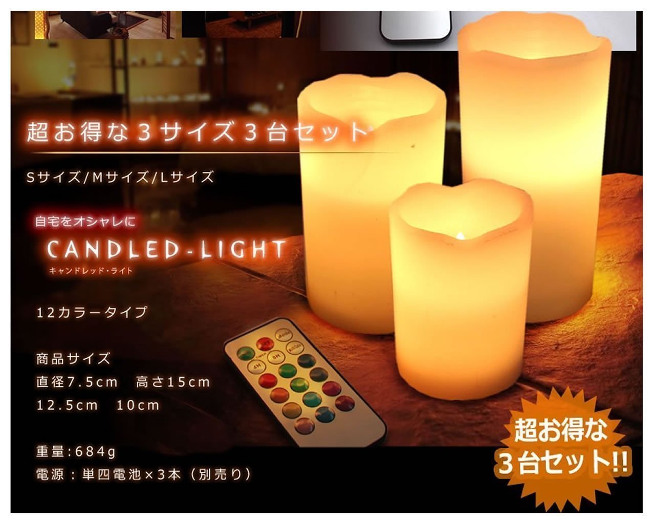 Equipped with LED light capable of 12 discoloration with light like real fire