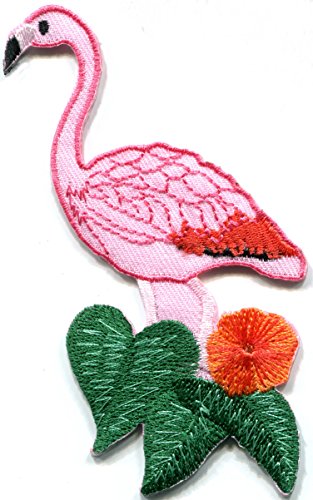 Pink flamingo wading bird animal wildlife embroidered applique iron-on patch new