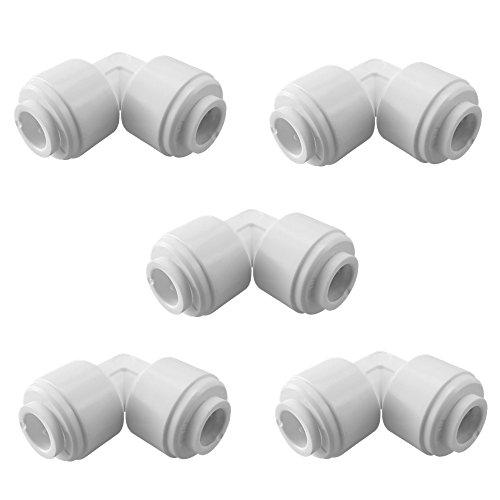 PureSec 2017 LTOB1414 mini white plastic quick fitting 90 degree Elbow Union Push Connector for tubing OD 1/4" used for RO system refrigerator ice maker coffee machine(Pack of 5)