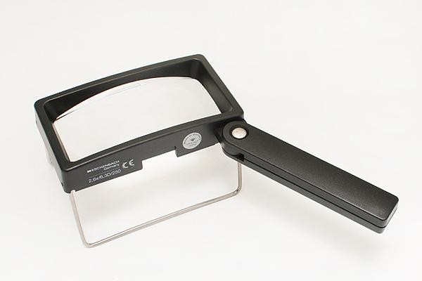 手で持つことも、置いて見ることもできるルーペ。座ったままの楽な姿勢で覗き込めます。大きなルーペをお探しの方にお勧め。「脚」をたためば手持ちルーペになります。歪みの少ない非球面レンズを採用。エッシェンバッハ独自開発PXM(R)光学樹脂レンズを採用しているので傷が付きにくく、明るく拡大します。 |