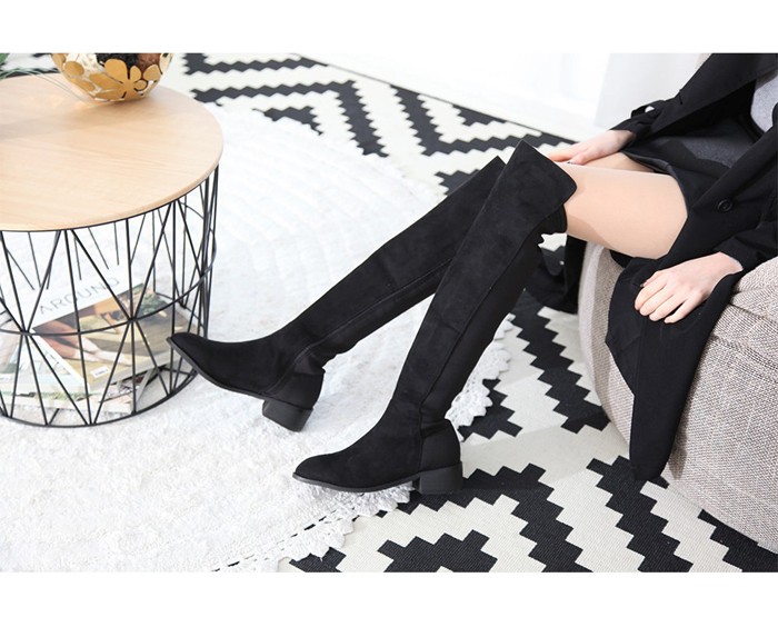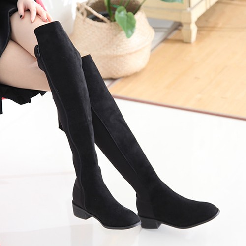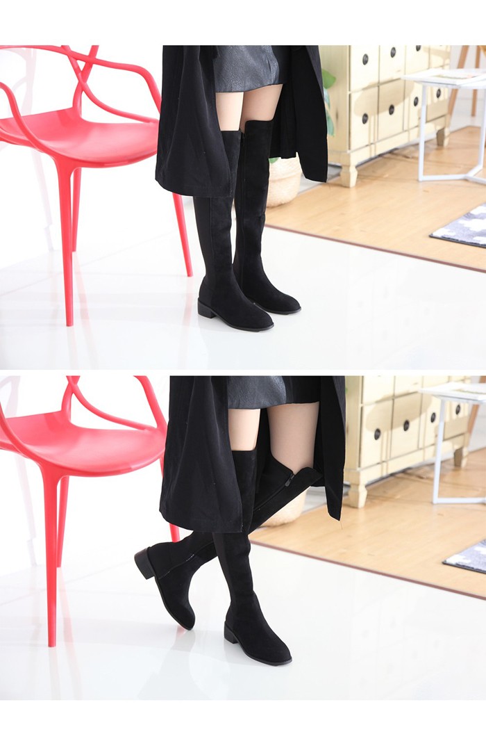 商品名:ロングブーツ レディース 切り替え 太ヒール チャンキーヒール 2017 秋 冬 ファッション 靴 婦人靴