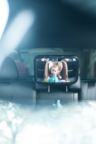 -. Feature : Extra large convex mirror allows a full range of vision for rear facing infant car seats. / Crystal clear, highly reflective, premium quality mirror with no blurring and shatter proof glass design for impact safety. / Adjustable pivot ball mount that fully rotates 360 degrees and swivels to view your baby at an optimal angle. / High grade nylon straps securely latches and tightens to headrest within seconds / 100% Satisfaction Guaranteed or your money back No risk, no hassle , no worries