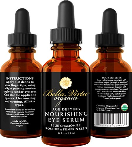 All certified organic ingredients! We use only the finest and purest organic plant oils which makes our Nourishing Eye Serum gentle and effective for even the most sensitive skin.