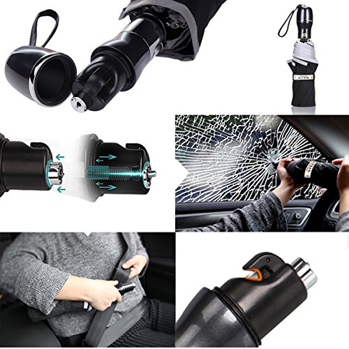☂ [ESCAPE DESIGN]: The new multi-purpose car screen, safety lock, safety belt cutting tool with removal tools and reflector strips (in the dark) to keep you and your family safe. Can crush the thickness of 10mm of the window pane.
