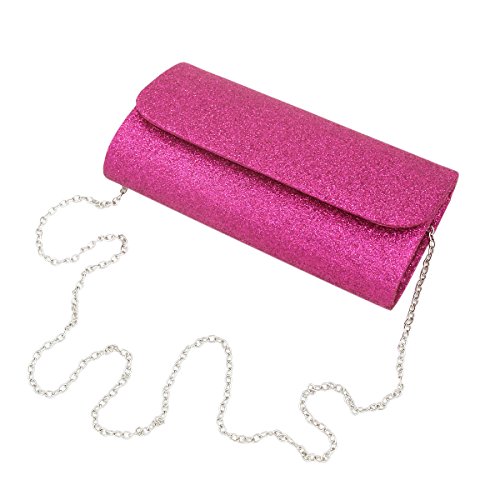 -. Feature : Elegant small metallic glitter clutch evening bag / Fabric lining. Magnetic-flap closure. Interior wall pocket. / Removable hideaway shoulder chain strap with 22" drop / 8" (L) x 4.25" (H) x 2" (W) / High quality with different sparkling colors available