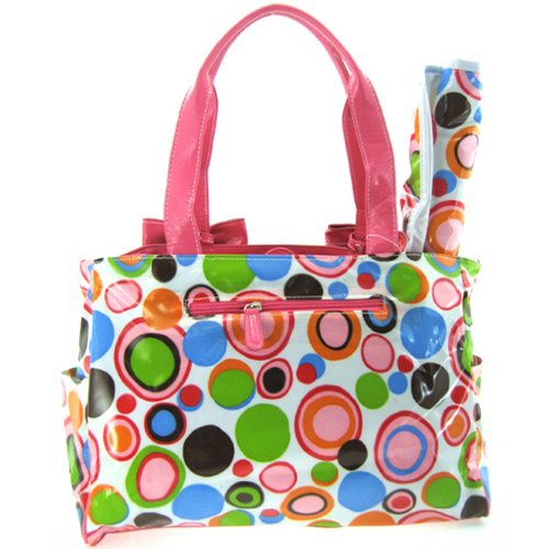 - Title : Cute! Pink Trim Retro Circles Tote Purse Diaper Bag w/ Changing Pad