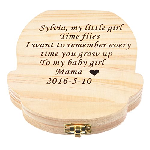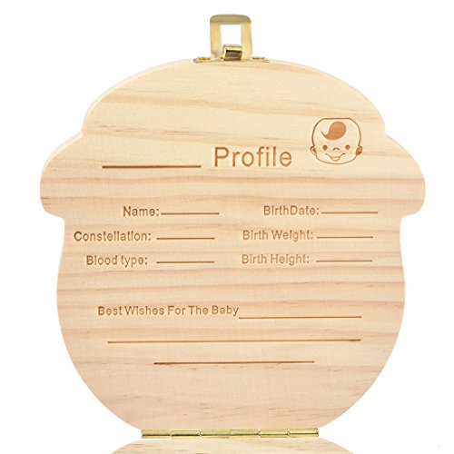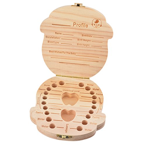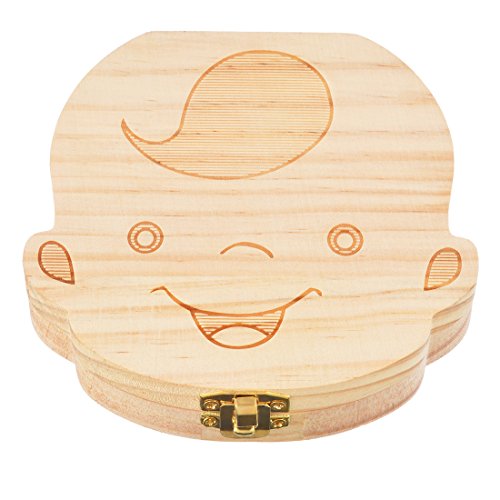 MJARTORIA Boy Baby Tooth Box, Milk Teeth Wood Case Storage Keepsake Organizer Deciduous Souvenir
