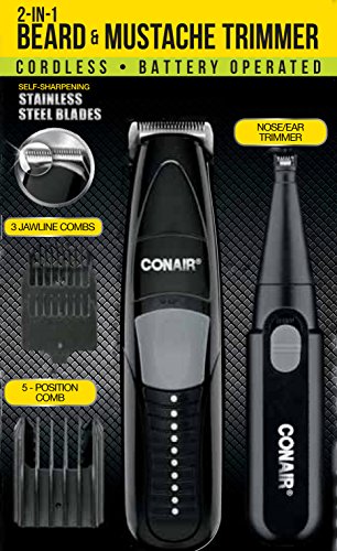 Conair for Men 2-in-1 Beard & Mustache Trimmer; Cordless - Battery Operated