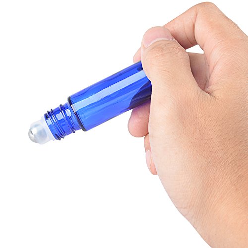 24 Pack,10 ml Blue Glass Roller Bottle Bottles with Removable Stainless Steel Roller Ball.Designed for Essential Oil,Perfume Oils and Mosquito repellent liquid.