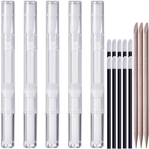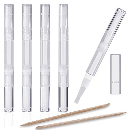 KINGMAS 5 Pack 3ml Nail Oil Pen Empty Transparent Twist Pens Cosmetic Lip Gloss Container Eyelash Growth Liquid Tube with 3pcs Orange Wood Stick &...
