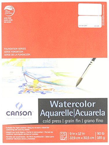 Canson 100511022 Watercolor Pad, 15 Sheets, 9" x 12" Size, Natural White