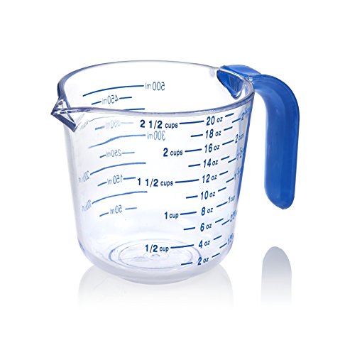 Arrow Home Products 00031 2-1/2 Cup Cool Grip Measure Cup, 20-Ounce Capacity, Crystal with Blue Handle and Graduates