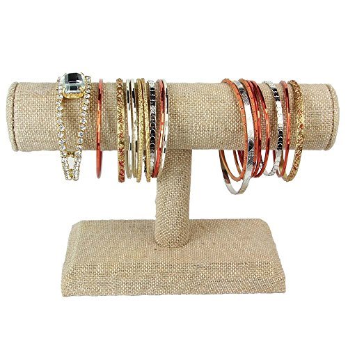 Burlap Earth Tone Beige Jewelry T-bar Display 7 3/4"W x 2 7/8"D x 4 7/8"H