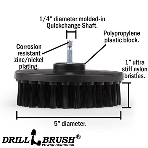 5 Inch Diameter Ultra Stiff Nylon Scub Brush Used for Heavy Duty Brick and Stone Cleaning with quick change shaft by Drillbrush