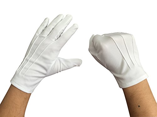 Product Description Feature: Classic Design: these gloves have three ribs on the front. Hemmed for a neat appearance. Elegant, comfortable, soft, sanitary protection for hands. Functional usage: Waiters/Waitress, Driving, Parades, Inspection, Magician, Tuxedo, Doorman, Fire or Police Dress Uniform. Especially, these look good with Santa costume. Washable gloves: These gloves have been tried to be washed by hand and washing machine in Woolite and left to hang dry and they are perfect. Professional Packaging Before the goods shipping out, they will be put into a valve bag which is soft and not easily damaged. The valve bag can ensure the goods will not get wet, and make sure it's in good condition when buyers receive them. Satisfied Service May Co is striving to provide our customers high quality products with competitive price. Your opinions is highly appreciated and welcomed to improve our products and service. If anything you are unsatisfied or any queries, please come to May Co Customer Service department at any time. MAY CO 0