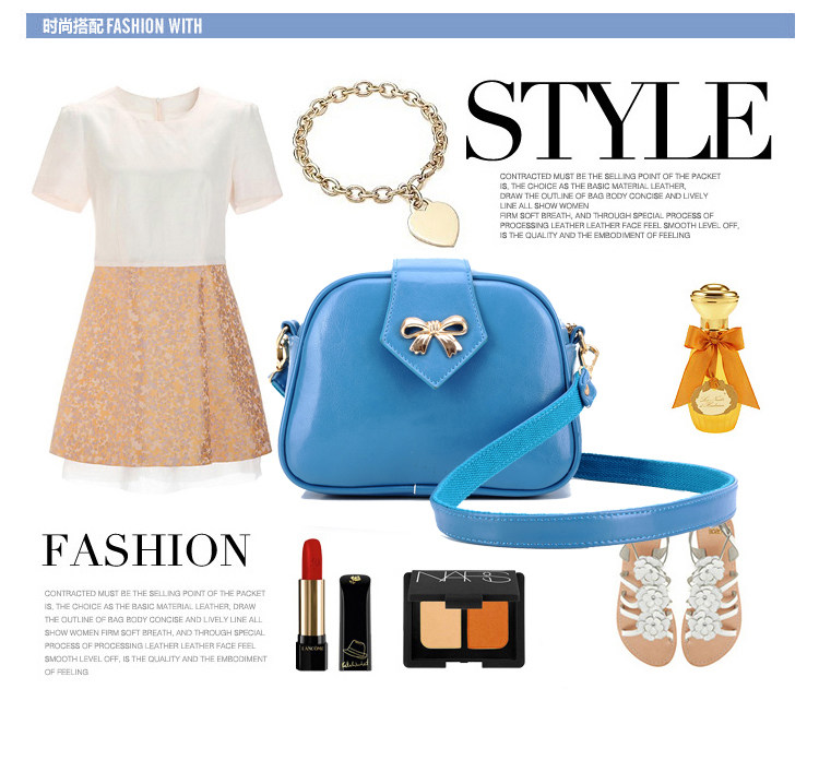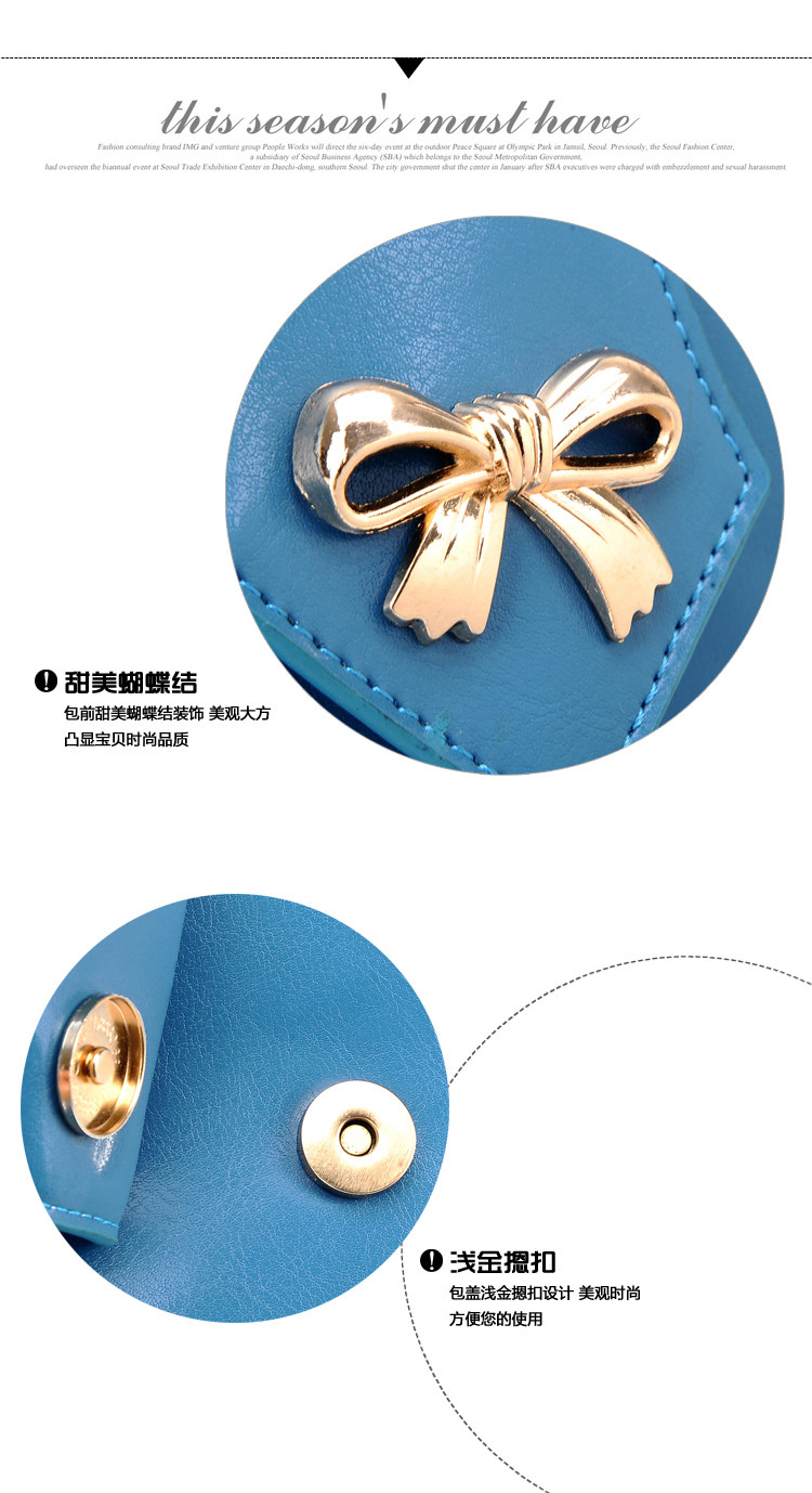 韩版夏季蝴蝶结单肩斜跨女包。内部1个拉链袋、2个置物袋