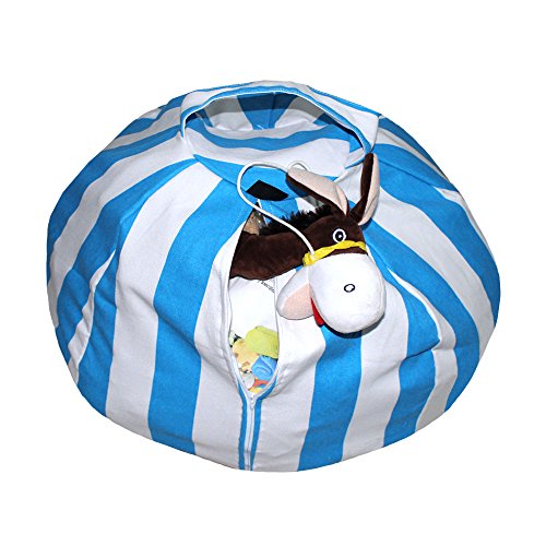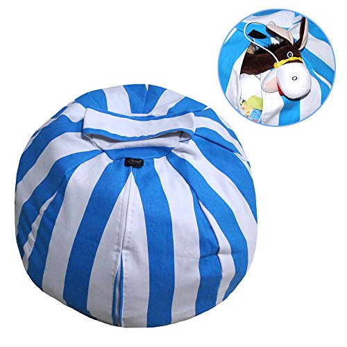 Stuffed Animal Storage Bean Bag Chair, Premium Canvas, Easy Solution for Extra Toys, Blankets, Covers, Towels and Clothes (32 inches, Blue)