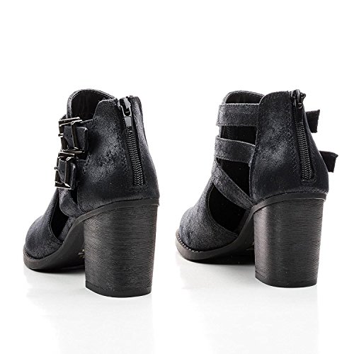 Product Description Women's ankle strappy booties featuring round closed toe, cutout side, double buckle straps with a back center zipper and cushioned insole 0