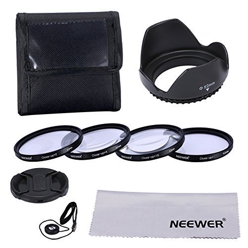 Neewer 52MM Professional Close-up Macro Accessory Kit for NIKON D7100 D7000 D5300 D5200 D5100 D5000 D3300 D3200 D3100 D3000 D90 D80 DSLR Cameras - Includes Macro Close-Up Set (+1, +2, +4, +10)+ Filter Carrying Pouch + Tulip Flower Lens Hood + Center