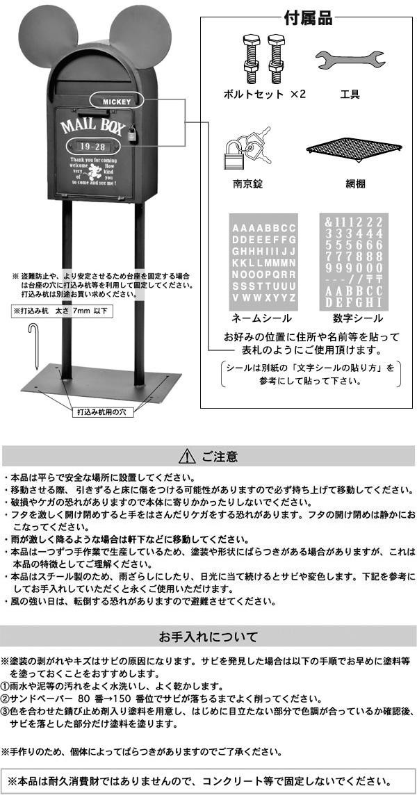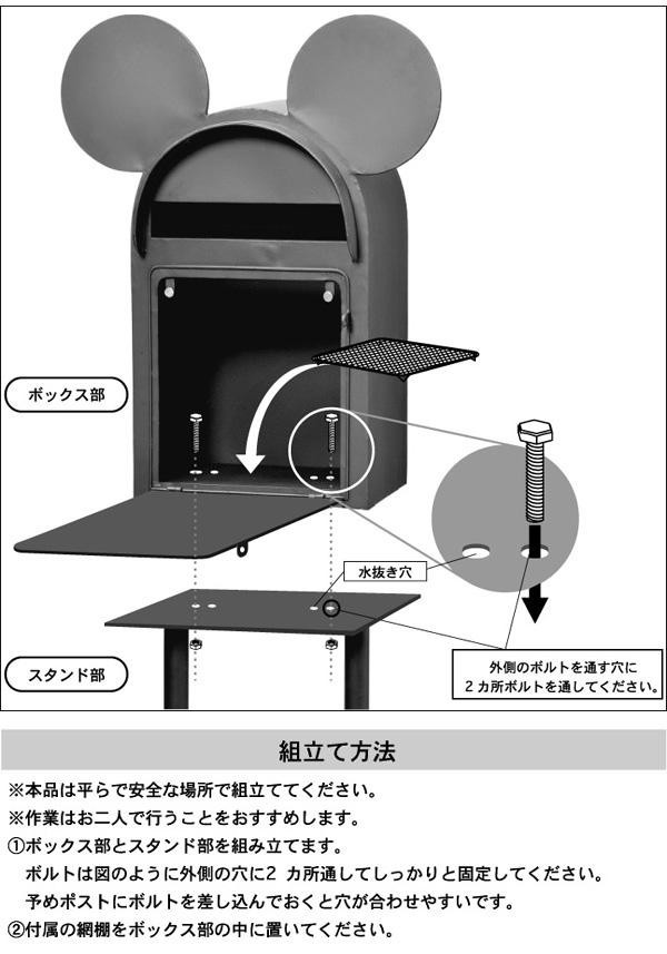ミッキーのシルエットをモチーフにした可愛さ満点のスタンドタイプポスト★落ち着いた色合いで、かわいいけれど甘くなり過ぎないお洒落なデザインに仕上げました!!見た目はもちろん、フタが大きく開くので郵便物も取出しやすい!!また、付属のシールを貼ってあなただけのオリジナルアレンジができます★ |