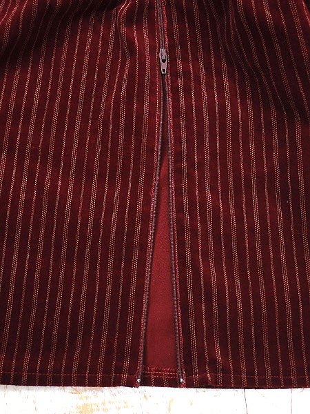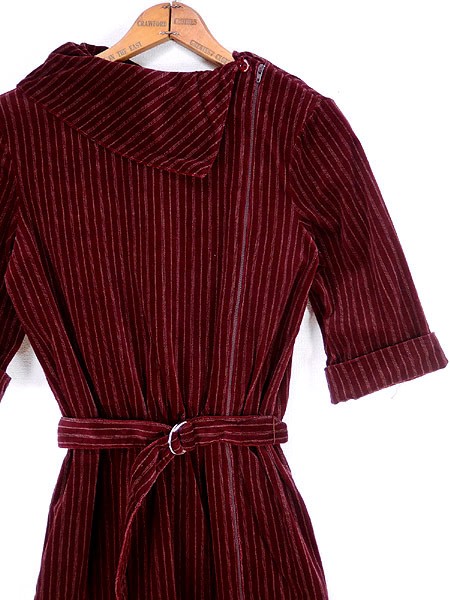 Ladies ブランド- カラーワインレッド・ベージュ メール便不可 コンディション★★★ 素材ベルベットと思われます。 表記サイズ7 実寸サイズ 着丈 88 cm 身幅 44 cm 肩幅 39 cm 袖丈 32 cm ウエスト 54cm 〜 82cm (21インチ〜32インチ) ※ウエスト・ヒップ以外は平置き採寸【code】#b