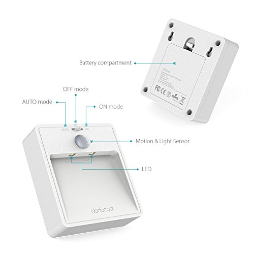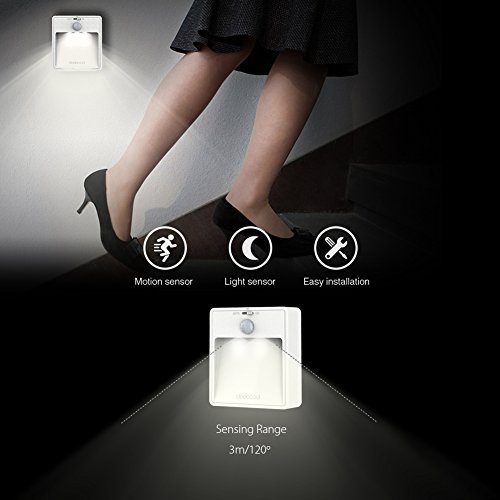 dodocool LED Night Light Motion Sensor Light Battery-Operated Dusk to Dawn Sensor Warm Light for Hallway, Closet, Stairs, Bedroom, Nursery and More