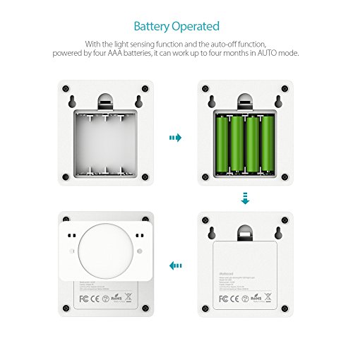 Battery Operated: Adopt two bright and durable LED lamp beads to ensure long-term use. With the light sensing function and the auto-off function, powered by four AAA batteries, it can work up to four months in AUTO mode. (Batteries are not included.)