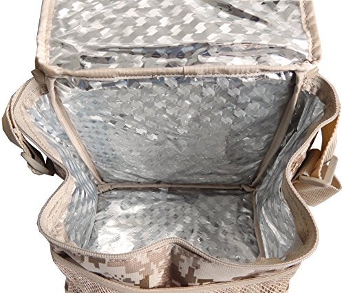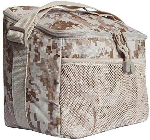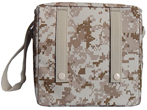 -. Binding : Misc. -. EAN : 0021676720269 -. Feature : Size: 9" L x 7" W x 6 1/2 - 9" H / Molle Compatible / Adjustable strap to carry by hand or over the shoulder / Zippered top flap / Mesh front pocket to carry extra items -. Label : Military Lage Company -. Manufacturer : Military Lage Company -. ProductGroup : Sports -. ProductTypeName : SPORTING_GOODS -. Publisher : Military Lage Company -. Studio : Military Lage Company -. Title : Marpat Digital Desert Insulated CHOW pack -. UPC : 021676720269