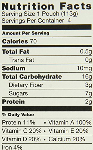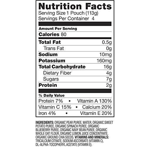 Made with fruits, veggies, beans and oats. 3 grams fiber; 2 grams protein