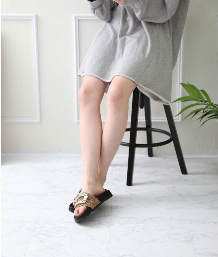 商品名:サンダル レディース ビジュー バックル 2018 夏 ファッション 靴 婦人靴