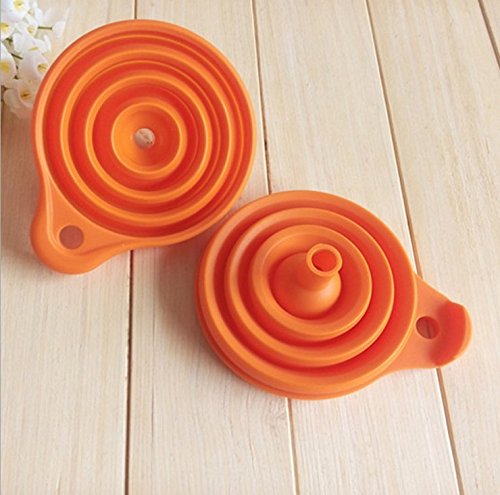 -. Title : Rey-Orange kitchen supplies Silicone Collapsible Funnel Foldable Funnel for Liquid Transfer 100% Food Grade Silicone Set of 2 (yellow and orange)