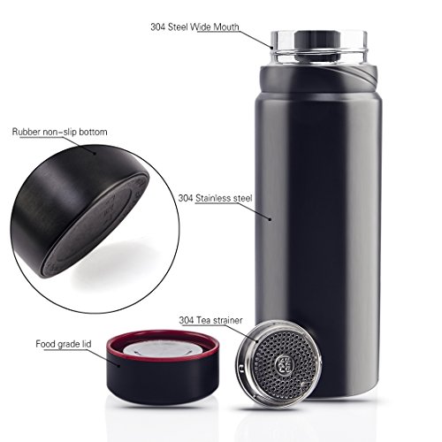 Wide mouth and tea strainer: According to different drink habits, someone like to drop ice cube in, someone like to put flower or fruit in bottle, which is for better customer experience.
